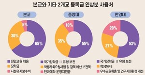 올해 사립대학의 62.3%가 등록금 인상을 확정했다. 본교 또한 제4차 등록금심의위원회(이하 등심위) 논의 결과 등록금의 4.95%를 인상했다. 본지는 사립대학의 등록금 인상 현황과 인상분 사용처를 살펴보고 △대학별 학생 반응 △1인당 장학금 및 교육비 △법인전입금 및 법정부담금 등을 분석했다. 수도권 사립대학 등록금 인상 현황 올해 전국 사립대학 151개교 중 94개교가 등록금 인상을 결정했다. 등록금 인상률은 △5.00~5.49%: 47개교 △4.00~4.99%: 37개 교 △3.00~3.99%: 8개교로 나타났다. 수도권 사립