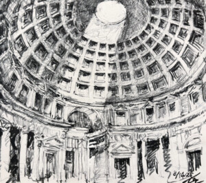 글로벌 관광의 시대, 유럽여행이 대중화된 지금 로마를 여행하는 건 아직도 특별하다. 고대 문명의 유적이 도심 곳곳 발끝에 널려 있는 도시, 돌과 콘크리트로 만들어진 그래 서 지금도 우리에게 전달된 2000년 전 유적을 보고 있으니 그야말로 도시 전체가 “기념비”라 할 만하다. 그런 로마에서도 판테온은 여러 유적 중에서 단연 으뜸이다. 반쯤 무너진 콜로세움과 달리 판테온은 장구한 세월을 이겨내고 온전한 모습을 간직하고 있다. 콘크리트로 지어 진 판테온, “판(pan)”은 모두를 뜻하는 접두어이고 “테온(theon)”은 신성 혹은 초월