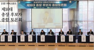 지난 21일(목) 본교 한경직기념관 김덕윤예배실에서 본교 신문방송국이 최초로 주최한 ‘제65대 총학생회 후보자 토론회’가 열렸다. 제65대 총학생회 선거가 이례적으로 세 후보가 입후보함에 따라 후보자 역량을 검증하고 학생 참여를 독려하기 위해 개최됐다. 본지는 토론회 내용 중 △공통질문 △상호질문 △학생질문(사전질문, 현장질문) 일부를 요약해 정리했다.*기호 1번 ‘당신의 바람, 우리의 숭실 WE:SSU’ 선거운동본부 손승민(정치외교·20) 정후보(이하 정), 정태영(소프트웨어·23) 부후보(이하 부) 기호 2번 ‘우리의 소망이 울