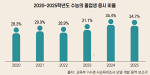 교육부가 지난해 10월 실시한 ‘N수생 사교육비 조사 모델 개발 용역 보고서’에 따르면 2024학년도에 N수로 대학에 진학한 학생 중 23.4%가 또다시 N수를 준비하는 것으로 나타났다. 이 중 68.8%가 정시, 21.8%가 수시에 응시한다고 답했다. 계열별로는 △자연계열: 29.4% △예체능계열: 25.4% △공학계열: 25.3% △의약학계열: 12.3% 순으로 집계됐다. 이번 조사는 N수생의 사교육비 규모와 구조를 체계적으로 파악하고 향후 통계 조사를 위한 기초 모델을 구축하기 위해 진행됐다. 연구 대상은 2024학년도 대학