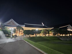이후에는 관저로 갔다. 관저는 대통령과 그의 가족이 생활한 곳이다. 전통 가옥의 모습을 하고 있다. 관저 앞에는 소나무 세 그루가 있었다. 크고 웅장했다. 과거 대통령이 심은 것이다. 관저에는 조명이 설치돼 있었다.