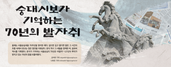올해는 서울숭실세움 70주년을 맞이한 해다. 길다면 길고 짧다면 짧은 그 시간의 흐름 속에서 본교는 많은 발전을 이뤄냈다. 본지 역시 그 세월을 함께한 바, 글로써 역사를 기록했다. 본지가 기억하는 서울숭실의 70년은 어떨까? 127년의 뿌리가 받치고 있는 70년의 꽃을 되돌아봤다.