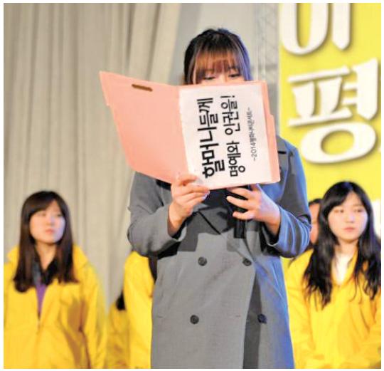 하나. 역사를 잊은 민족에게 미래는 없기에 일본군 위안부 문제가 해결될 때까지 우리 대학생들은 함께 하겠습니다.