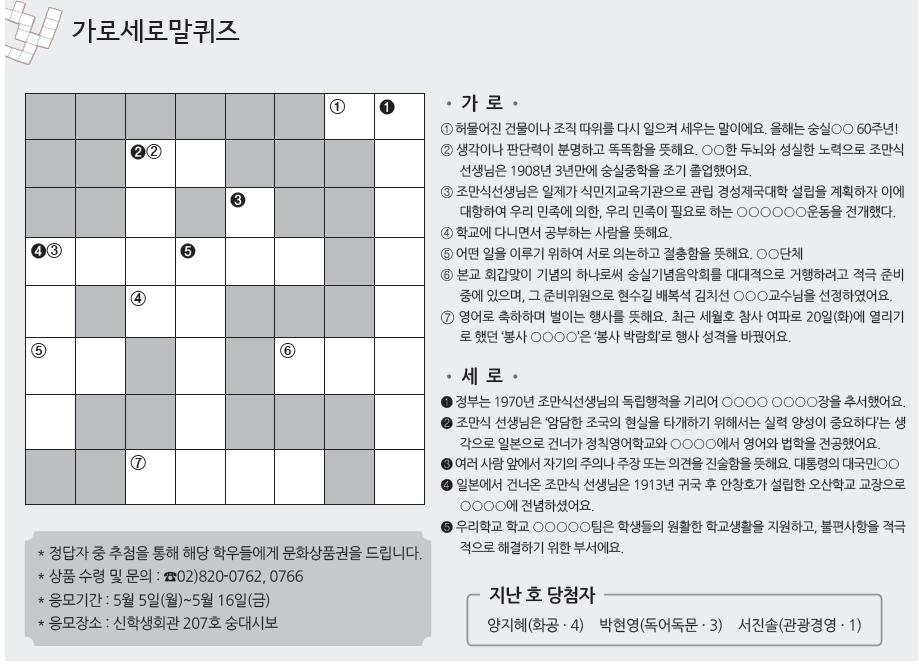 . . . . 저작권자 © 숭대시보 무단전재 및 재배포 금지 개의 댓글 회원로그인 작성자 비밀번호 댓글 내용입력 댓글 정렬 최신순 추천순 답글순 BEST댓글 BEST 댓글 답글과 추천수를 합산하여 자동으로 노출됩니다. 닫기 더보기 댓글삭제 삭제한 댓글은 다시 복구할 수 없습니다. 그래도 삭제하시겠습니까? 비밀번호 닫기 댓글수정 댓글 수정은 작성 후 1분내에만 가능합니다. 본문 / 400 비밀번호 닫기 내 댓글 모음 닫기 주요기사 지식과 열정으로 지식재산권을 품다 글로벌통상학과 12학번 동문의 여보세요 '노들 글로벌 예술섬'을 기다리며 청년 파산과 사회적 안전망 순국선열의 날을 기리며 학생대표자의 역할이란 무엇인가?