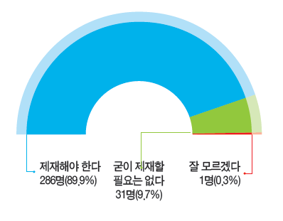 본지는 지난달 28일(화)부터 지난 1일(금)까지 “외부인의 샤워실 사용 어떻게 생각하세요?”라는 질문으로 본교 △중앙도서관 3층 △조만식기념관 3층 △베어드홀 2층에서 스티커부착 방식의 설문조사를 실시했다. 총 318명의 학내 구성원을 대상으로 설문조사를 실시한 결과 △제재해야 한다: 286명(89.9%) △굳이 제재할 필요는 없다: 31명(9.7%) △잘 모르겠다: 1명(0.3%)으로 집계됐다.