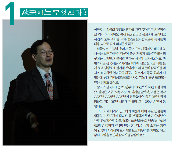 삼국지는 삼국의 투쟁과 흥망을 그린 것이므로 기본적으로 역사 이야기예요. 특히 등장인물을 생생하게 드러내고 사건의 전후 맥락을 구체적으로 묘사함으로써 독자들이 내용 속으로 깊게 빠져들게 하죠.