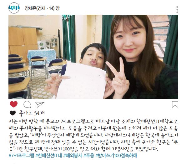 #7+1프로그램 #한베친선IT대 #해외봉사 #푸응 #받아쓰기100점축하해