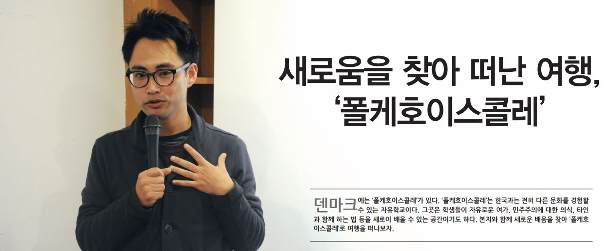 덴마크에는 ‘폴케호이스콜레’가 있다. ‘폴케호이스콜레’는 한국과는 전혀 다른 문화를 경험할 수 있는 자유학교이다. 그곳은 학생들이 자유로운 여가, 민주주의에 대한 의식, 타인과 함께 하는 법 등을 새로이 배울 수 있는 공간이다. 본지와 함께 새로운 배움을 찾아 ‘폴케호이스콜레’로 여행을 떠나보자.