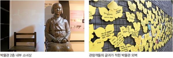 버스를 한 번 갈아타고 마포구로 향했다. 버스에서 내려 골목으로 들어서면 일본군 ‘위안부’를 그린 벽화가 쭉 이어진다. 전쟁과 여성인권 박물관은 지난 2012년 5월 5일 정신대문제대책협의회에서 시민들의 모금을 통해 개관한 박물관이다. 일본군 ‘위안부’ 생존자들을 기억하기 위해 세워진 이곳은 전 세계의 전시 성폭력 피해를 해결하기 위한 공간으로 나아가고 있다.