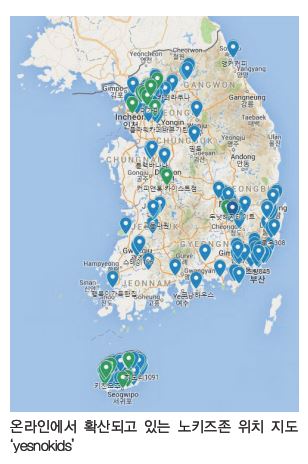 그러나 어린이 동반 고객들은 노키즈존 리스트를 환영한다는 반응이다. 초등학생을 키우고 있는 한 여성은 육아 커뮤니티에 “식당에 들어가 ‘자리 없나요?’라고 물어보니 종업원이 ‘아이는 받지 않으니까 나가달라’고 했다”며 “막상 노키즈존과 부딪쳐보니 전염병 환자 취급이라도 당하는 것 같아 기분이 나쁘다”는 글을 게재했다. 이에 대해 커뮤니티 회원들은 ‘씁쓸하다’, ‘노키즈존 지도를 참고해 피해서 외출해야겠다’는 등의 반응을 보였다. 이후 블로그 글은 삭제되었으나, 구글 지도를 이용한 노키즈존 위치 지도 ‘yesnokids’가 등장해 각종 커뮤니티 상으로 공유되고 있다.