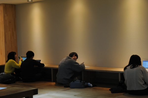 도서관하면 차분한 열람실과 빼곡한 책장이 떠오릅니다. 그러나 본교 중앙도서관에는 열람실과 책장뿐만 아니라 자유롭게 이용할 수 있는 여러 부대시설이 있습니다. 세미나룸, 디지털미디어룸 그리고 숭실마루는 특히 학생들이 자주 이용하는 공간입니다. 학생들은 친구와 밀린 과제를 마무리하기 위해 세미나룸을 이용하기도 하고, 보고 싶었던 DVD를 시청하기 위해 디지털미디어룸을 찾곤 합니다. 숭실마루는 고향 집 마룻바닥에 온 듯한 편안한 느낌의 휴식 공간으로 인기가 많습니다. 또한 숭실마루 내에 카페가 있어 마른 목을 축이기도 좋습니다. 오늘은 열람실도 좋지만 이곳으로 발을 옮기는 것은 어떨까요? 공강 시간에 친구와 함께라면 그날 하루가 짧게 느껴질 것 같습니다.