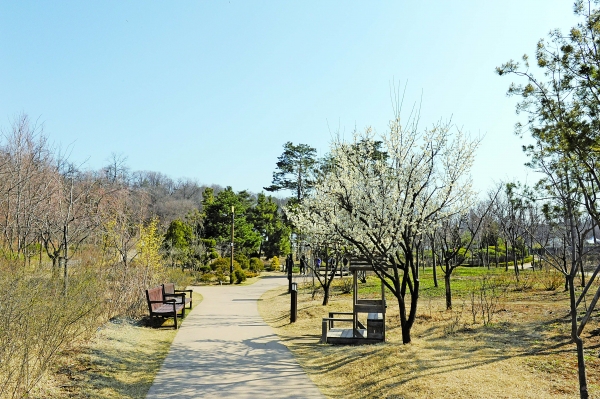 수목원 입구에는 작은 북 카페가 있답니다. 잠깐 들려 수목원 풍경을 감상하며 커피 한 잔을 즐기는 것도 좋을 것 같아요. 입구를 지나 수목원에 들어서면 푸른 저수지와 커다란 버드나무가 반겨줍니다. 저수지를 따라 가볍게 걷다보면 습지 식물원에서 수선화가 피어나고 있어요. 곳곳에 흰 매화도 활짝 폈습니다. 중간에 쉼터가 있으니 잠시 쉬면서 복잡한 생각을 정리하는 시간을 가져도 좋을 것 같아요. 인공 계곡 주변에는 봄을 알리는 벚꽃이 피고 있는 것을 볼 수 있습니다. 벚꽃을 풍경으로 사진 한 장 찍는 것도 좋을 것 같네요.
